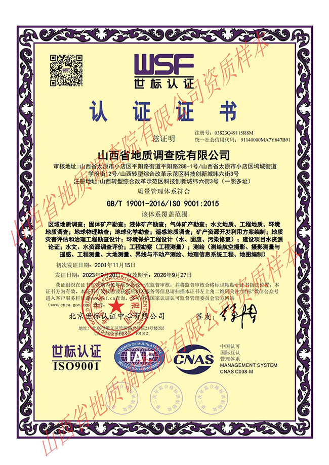 自成立以來,城市地質調查研究院一直秉持著“發(fā)揮專業(yè)優(yōu)勢,支撐服務山西省重大戰(zhàn)略和規(guī)劃部署,積極開拓服務領域,引領山西城市地質事業(yè)”的理念,在城市地質調查、生態(tài)環(huán)境調查及修復、地熱資源勘察開發(fā)、地質災害等領域高質量完成了一系列省級重點項目,受到社會、相關管理部門及業(yè)內同行的認可。